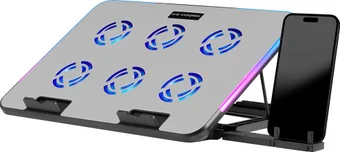 для ноутбука/для смартфона до 15.6", активное охлаждение, шум 25.5 дБ, регулируемый наклон, подсветка, 1xUSB