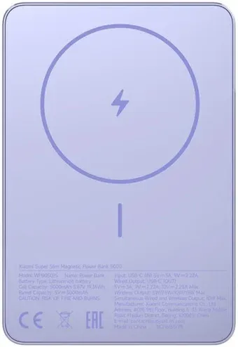 5000 мА·ч (19.35 Вт·ч), выходы: 1 x 5V/9V/10V (2250 мА), быстрая зарядка, беспроводная зарядка, поддержка MagSafe, крепление на смартфон