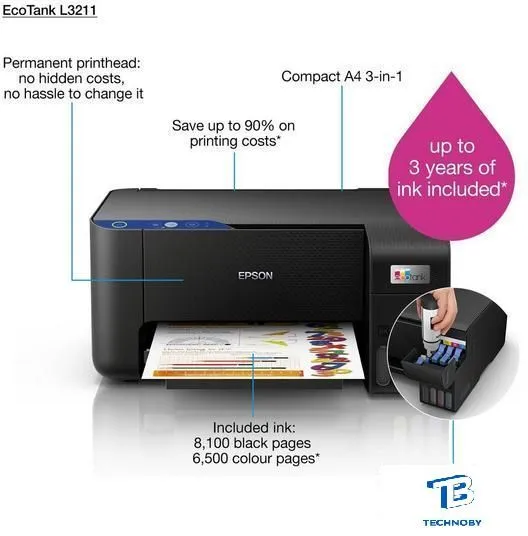 МФУ, струйный, цветной, формат A4 (210x297 мм), скорость ч/б печати 33 стр/мин, скорость цветной печати 15 стр/мин, разрешение 5760x1440 dpi, СНПЧ