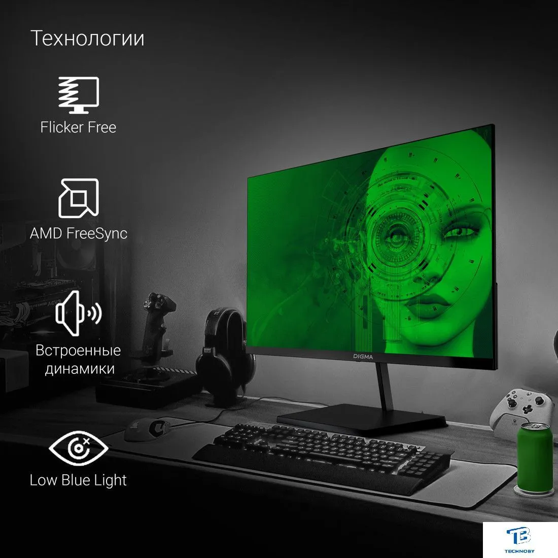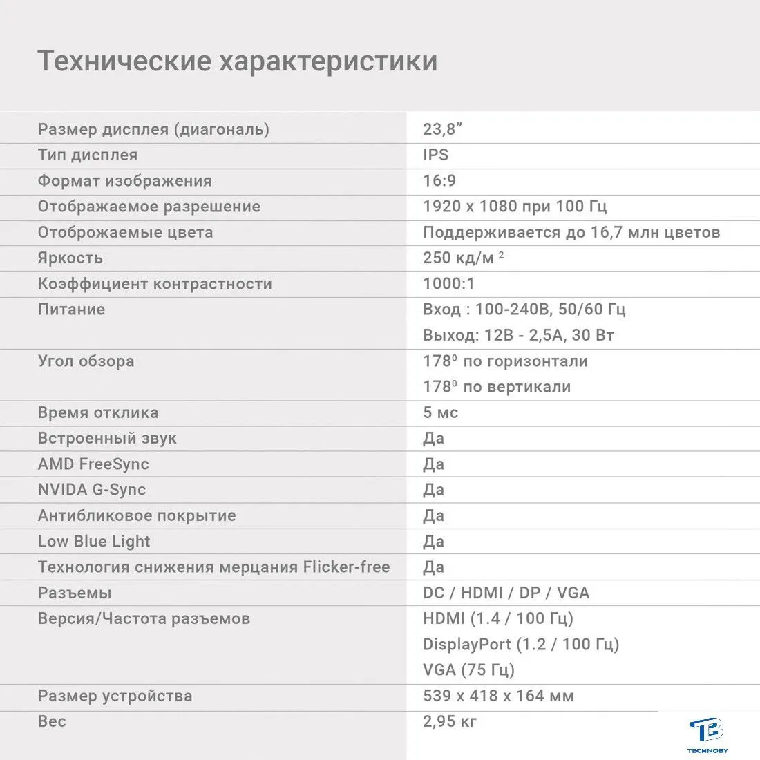 23.8", 16:9, 1920x1080, IPS, 100 Гц, AMD FreeSync/совместимый с NVIDIA G-Sync, динамики, интерфейсы HDMI+D-Sub (VGA)+DisplayPort