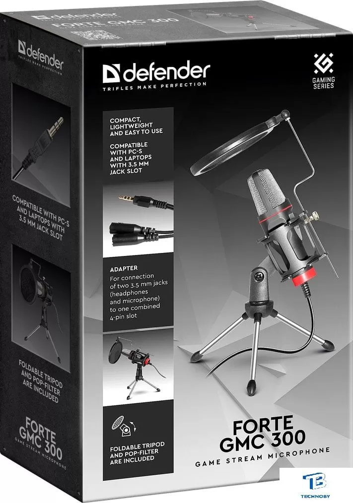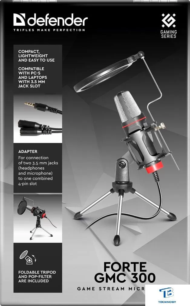 конденсаторный, круговая направленность, настольный, для стриминга и подкастов, 100-10000 Гц, подключение по 3.5 мм, черный
