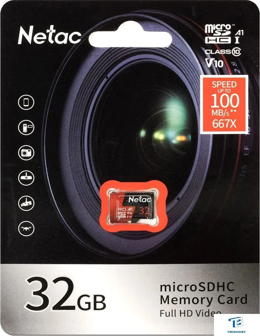 32 ГБ, класс 10, UHS-I (класс U1), V10, A1, чтение: 100 МБ/с