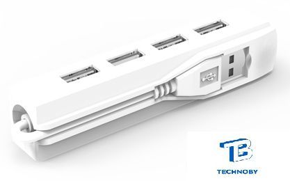USB Type-A 2.0, 4 порта, пассивное питание, цвет белый/серый