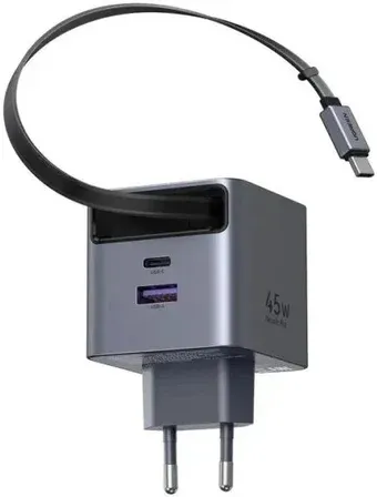 сетевое зарядное для телефонов/для планшетов/для наушников, USB Type-A/USB Type-C, 45 Вт, быстрая зарядка, кабель USB Type-C, 0.7 м