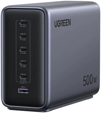 сетевое зарядное для телефонов/для планшетов/для ноутбуков, USB Type-A/USB Type-C, 500 Вт, быстрая зарядка, кабель DC jack, 2 м
