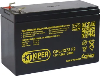 AGM, 12 В, 7.2 А·ч, клеммы F2, 151x65x94 мм, 2.45 кг, срок службы: 10 лет