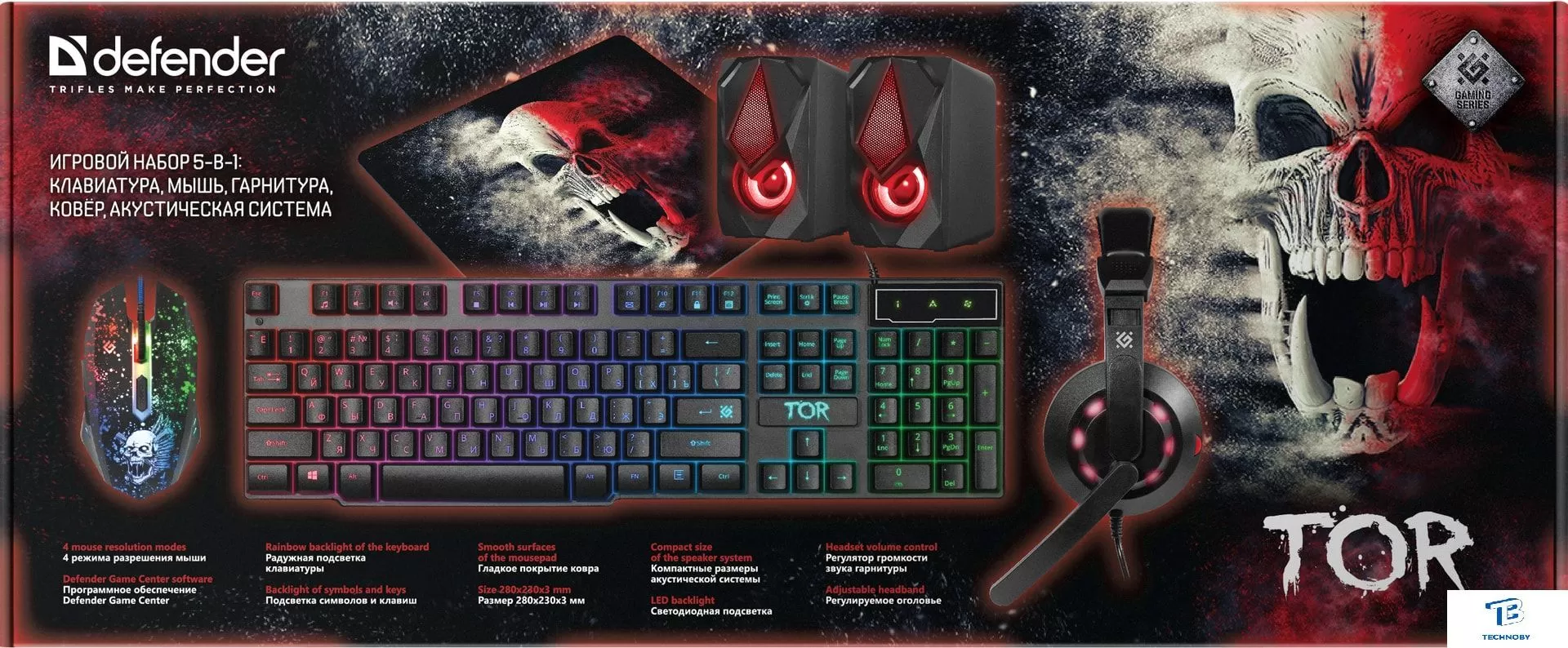 клавиатура + мышь с ковриком + наушники + колонки для ПК, мышь проводная USB (сенсор оптический), клавиатура USB, цвет черный