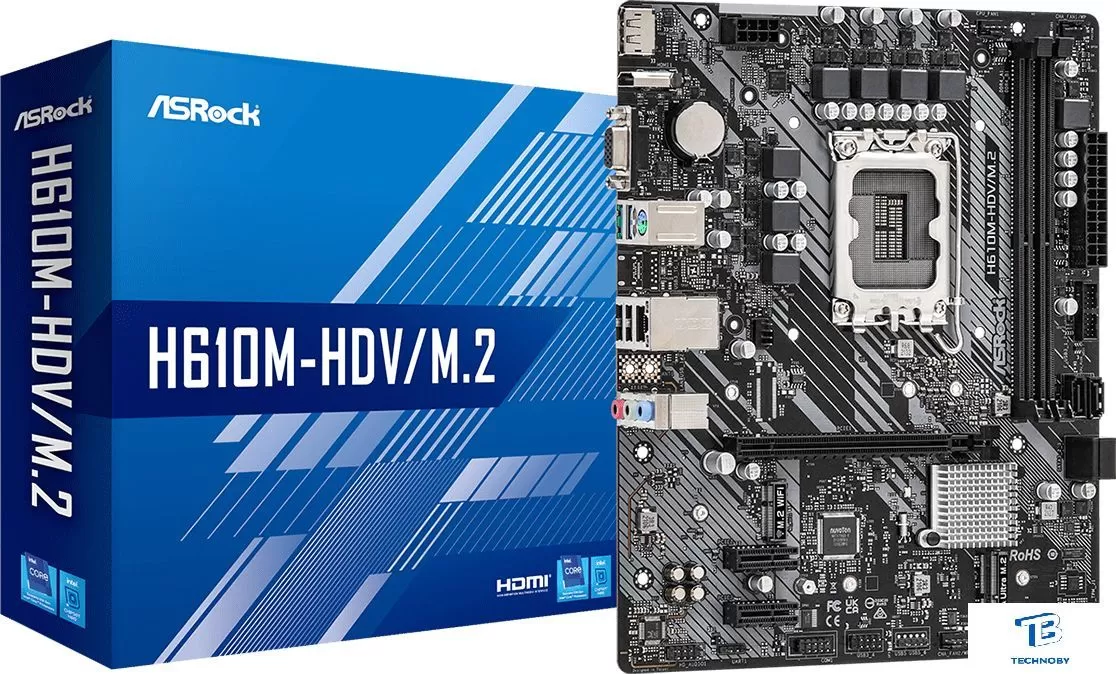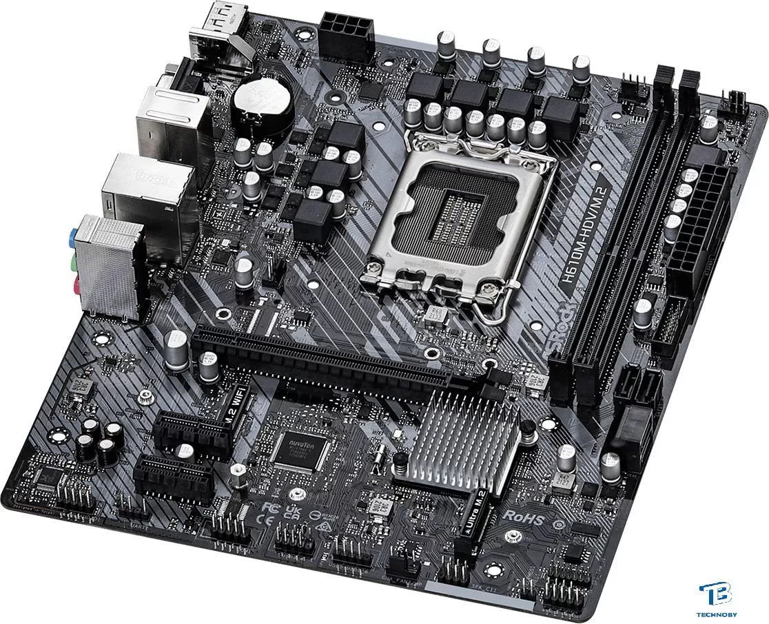 mATX, c процессором Atheros QCA9558, сокет Intel LGA1700, чипсет Intel H610, память 2xDDR4, слоты: 1xPCIe x16, 2xPCIe x1, 1xM.2