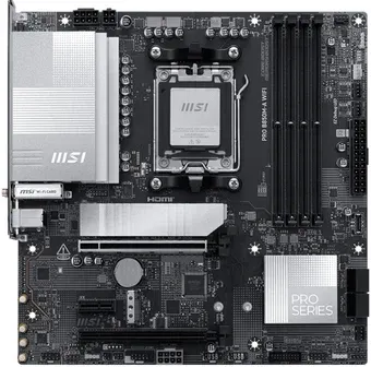 mATX, чипсет AMD B850, память 4xDDR5/DDR5 CUDIMM, слоты: 2xPCIe x16 5.0, 2xM.2, 802.11be (Wi-Fi 7)+Bluetooth 5.4, 8+2+1 фаз питания
