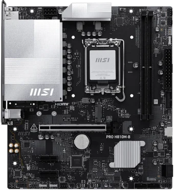 mATX, чипсет Intel H810, память 2xDDR5/DDR5 CUDIMM, слоты: 1xPCIe x16 5.0, 1xM.2, 6 фаз питания