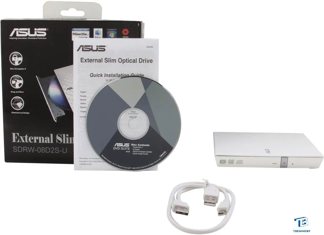 DVD Multi, внешний, интерфейс USB, толщина 21 мм, цвет белый