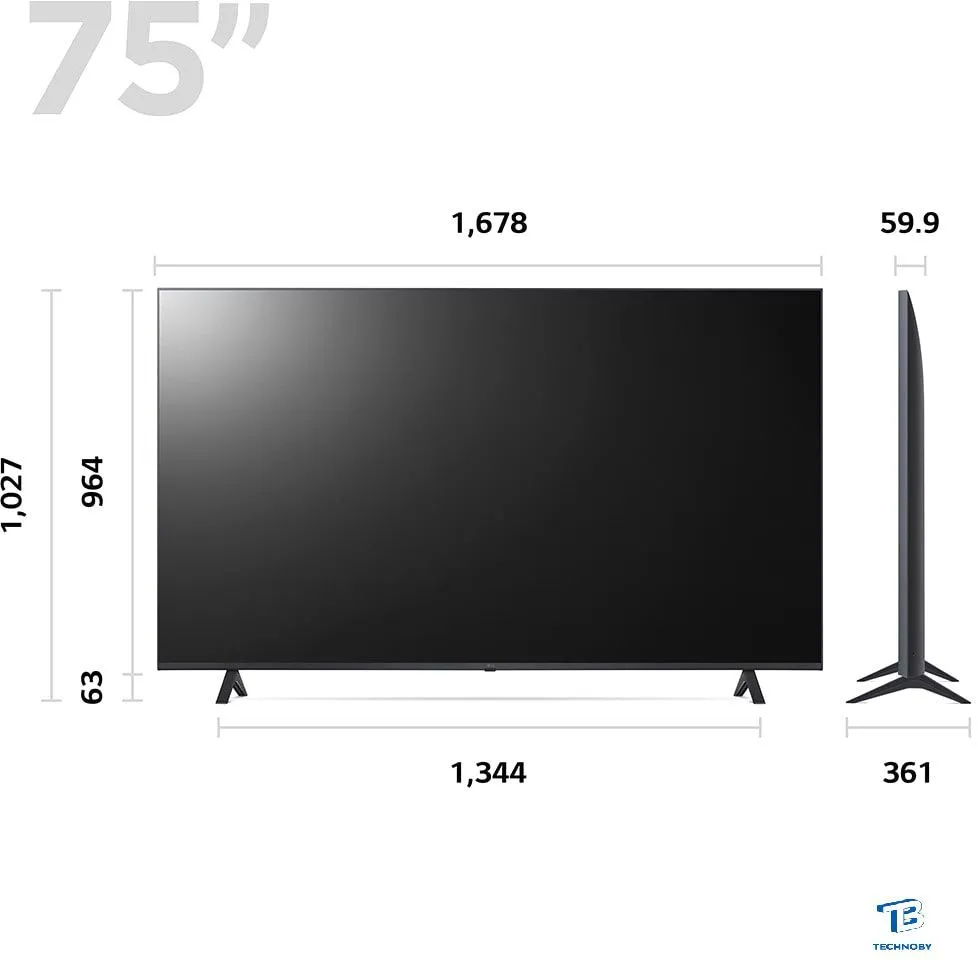 75" 3840x2160 (4K UHD), частота матрицы 60 Гц, Smart TV (LG webOS), HDR, Wi-Fi