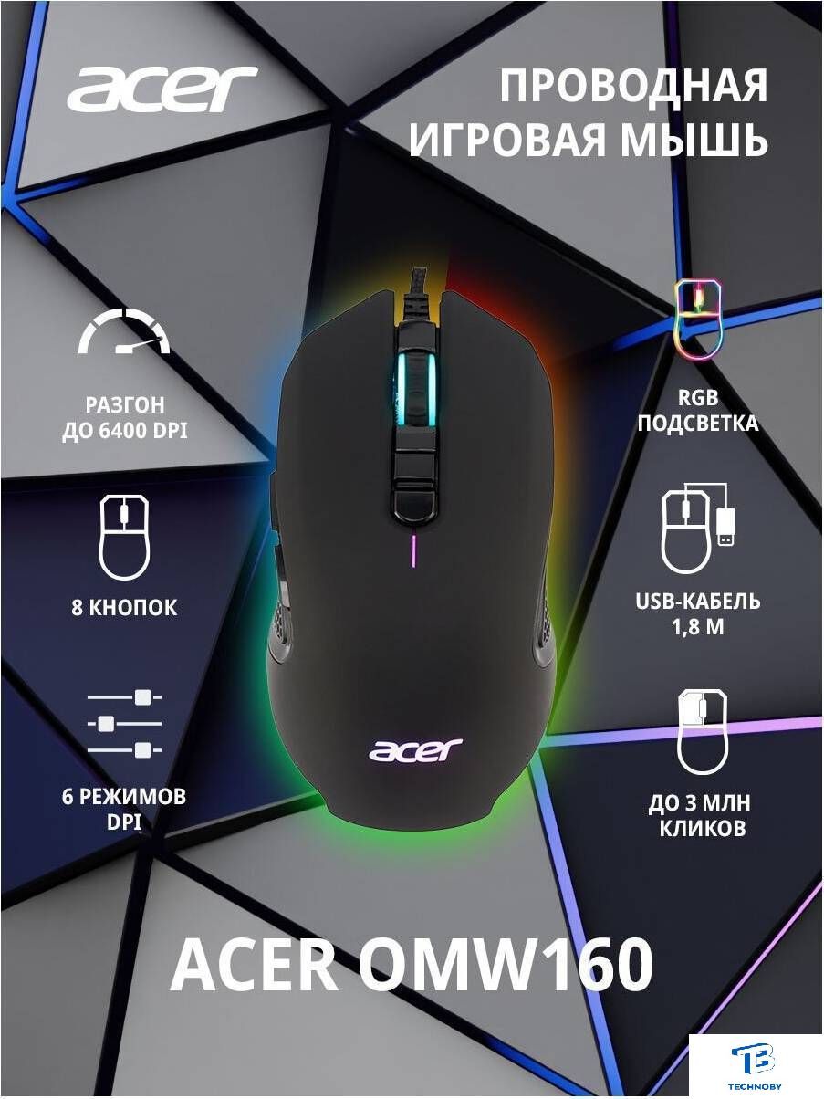 полноразмерная игровая мышь для ПК, проводная USB, сенсор оптический 6400 dpi, 8 кнопок, колесо с нажатием, цвет черный