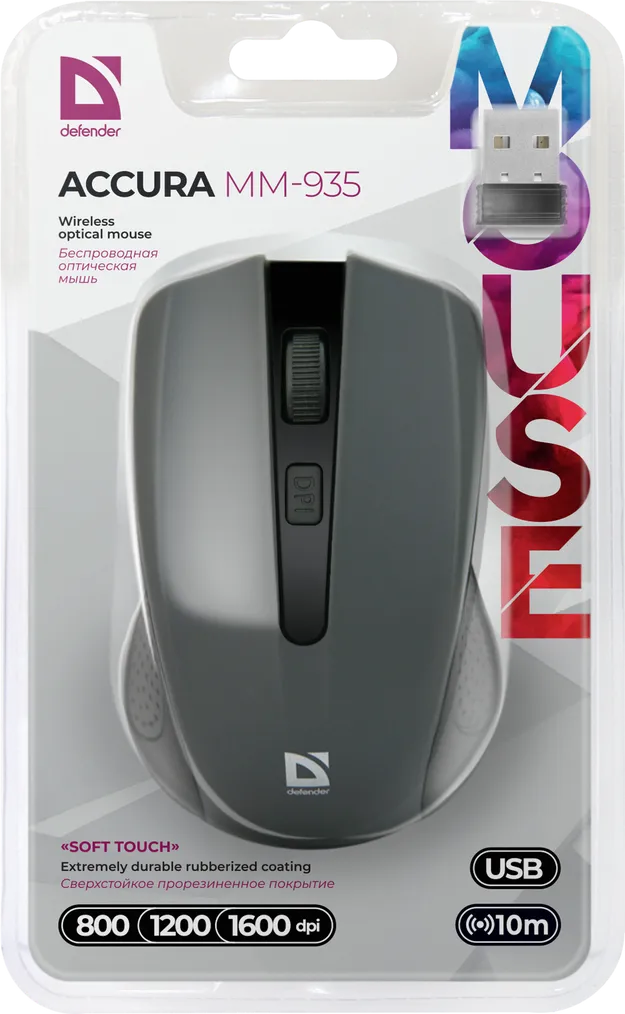 полноразмерная мышь для ПК, беспроводная радио, сенсор оптический 1600 dpi, 4 кнопки, колесо с нажатием, цвет серый/черный